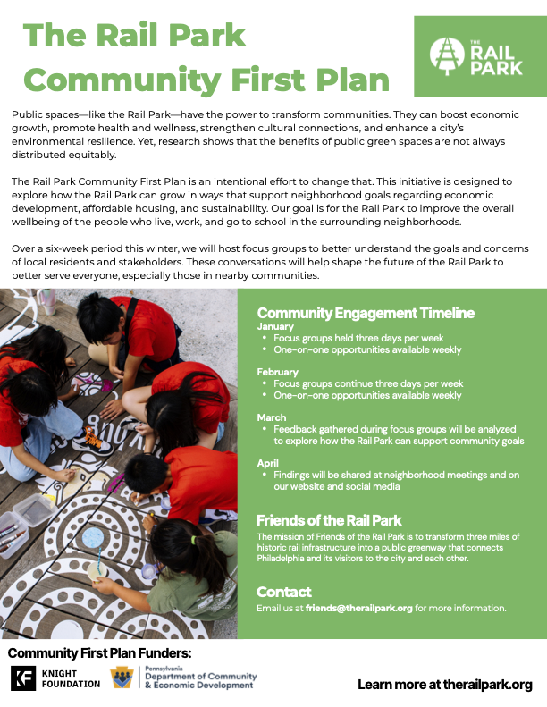 Please join us TOMORROW, October 30, for our October community meeting. We will be joined by representatives from the Rail Park who will discuss their new Community First plan.